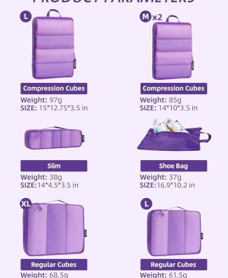 • Ultralight Packing Cubes 7 Set, 3 Compression Packing Cubes 3 Packing Organizers with 1 Shoe Bag