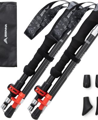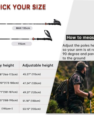 • BISINNA Carbon Fiber Trekking Poles Collapsible Walking Sticks Hiking Folding Poles Quick Lock for Women and Men Hiking Mountaining Backpacking Camping 2pc
