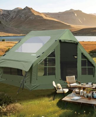 Inflatable Tent for Camping with Hand Pump Blow Up Tent Glamping 4 Season Air, Easy Setup Waterproof Outdoor Oxford Army Green 4-6 Person House Breathable Large Luxury