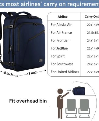 • MATEIN Weekender Backpack, Large Capacity Travelling Suitcase Backpack with Strap for Clothes, Expandable Flight Approved Business Carry on Daypack for International Travel, Blue