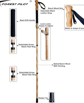 Trekking Poles- 1-pc Pack – Adjustable Hiking or Walking Stick –Strong, Natural Beech Wood – Quick Adjust Flip-Lock – Beech Wood Grip, Leather Strap