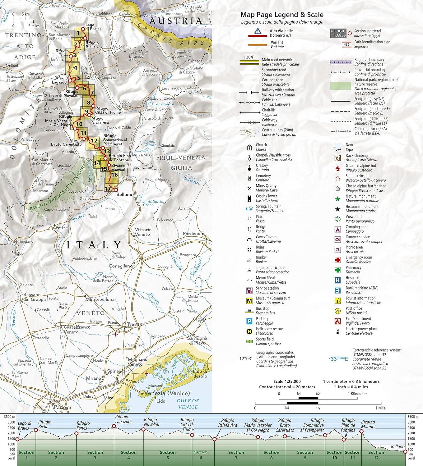 Featuring detailed topography, clearly marked trails, and points of interest, this map is designed to help you navigate the rugged terrain with ease. Whether you’re a seasoned hiker or a beginner looking to explore the beauty of the Dolomites, this map is an essential tool for planning your route and staying on track.